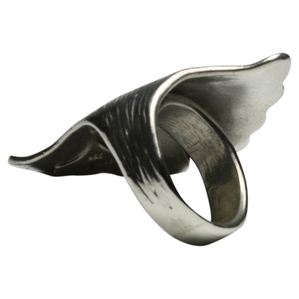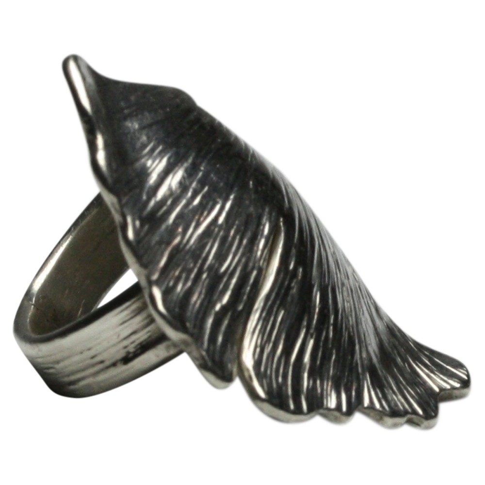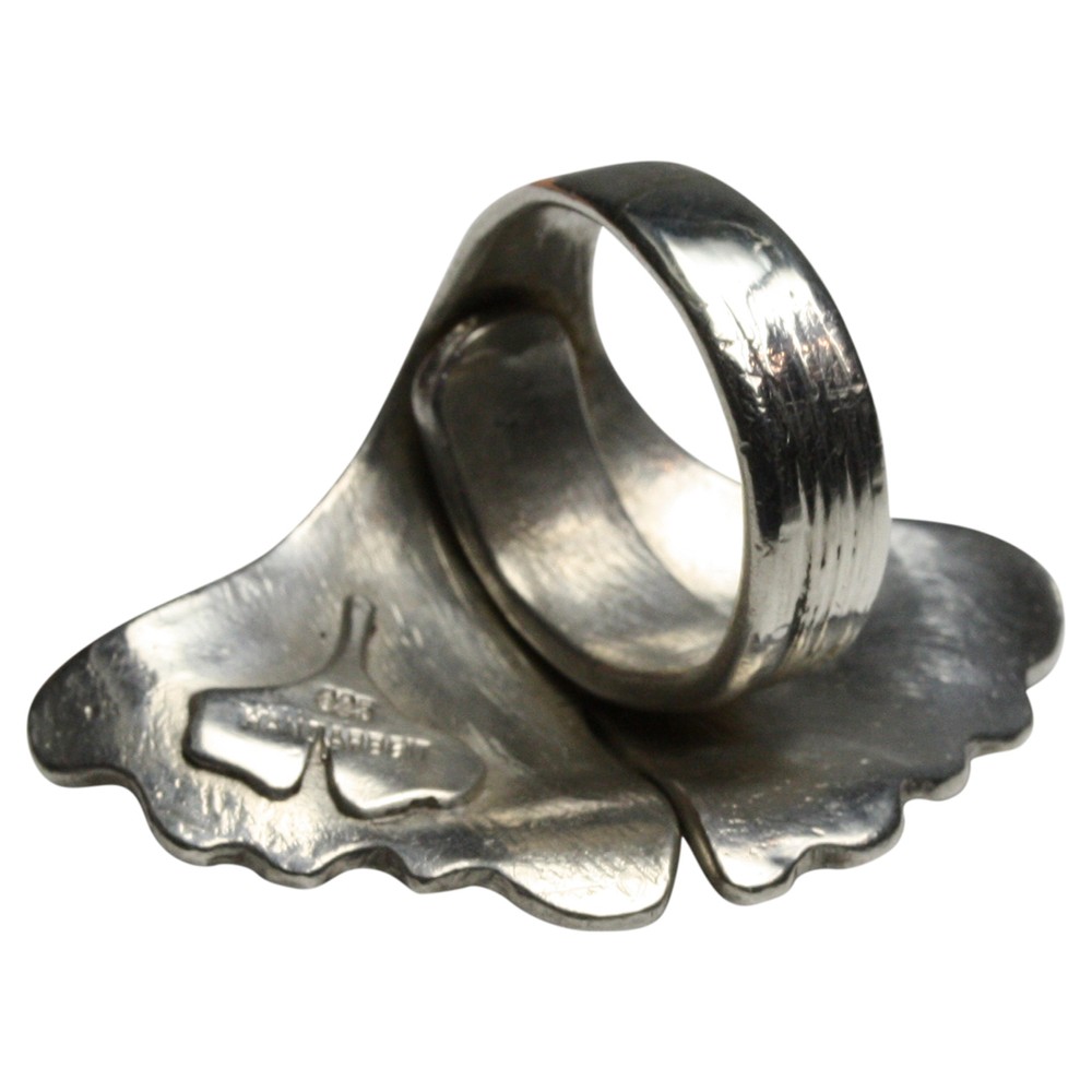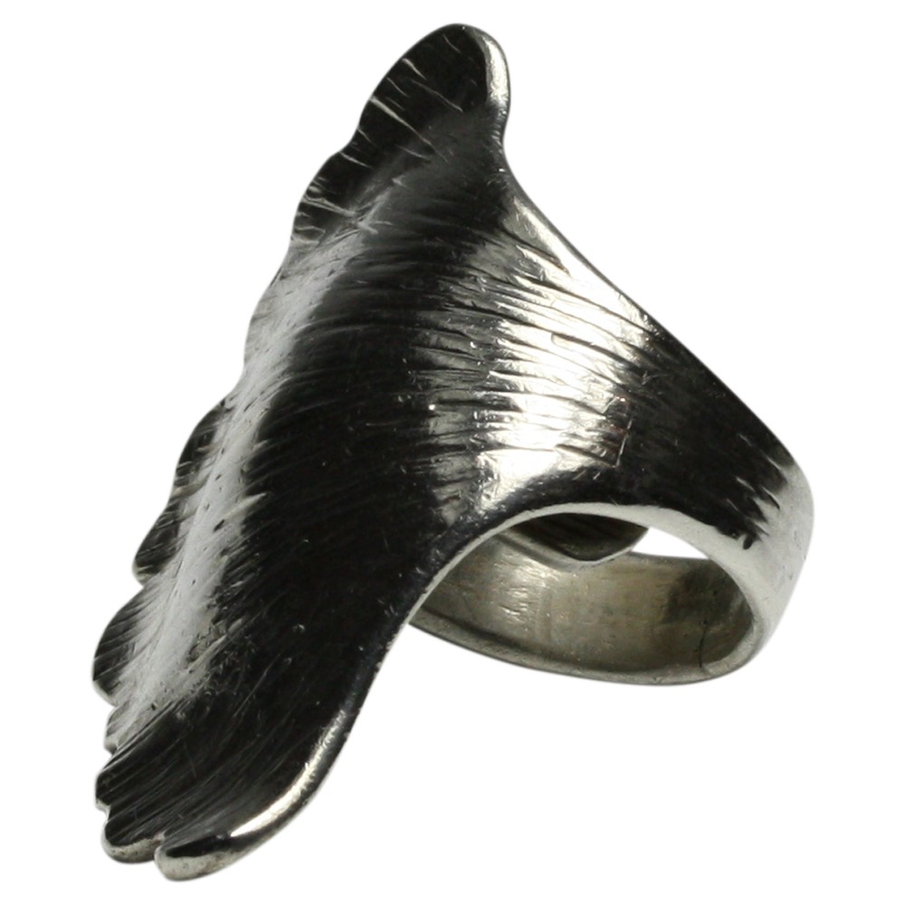 Ein sehr massiver handgearbeiteter Ring (22,10 Gramm) aus 925er Silber im Motiv eines Ginkoblattes. Der Ring hat eine Länge von 44 mm und eine Breite von 29 mm. Die Ringschiene hat eine Breite von 6,4 mm und die Ringgröße ist verstellbar. Bitte senden Sie uns bei der Bestellung Ihre Ringgröße damit wie sie für Sie einstellen können. Der Ring ist ein Unikat und wurden von der Bremer Goldschmiede Icke (Bremen Schnoor) gearbeitet und wird nun wegen altersbedinger Geschäftsaufgabe zu einem sehr viel günstigeren Preis angeboten.