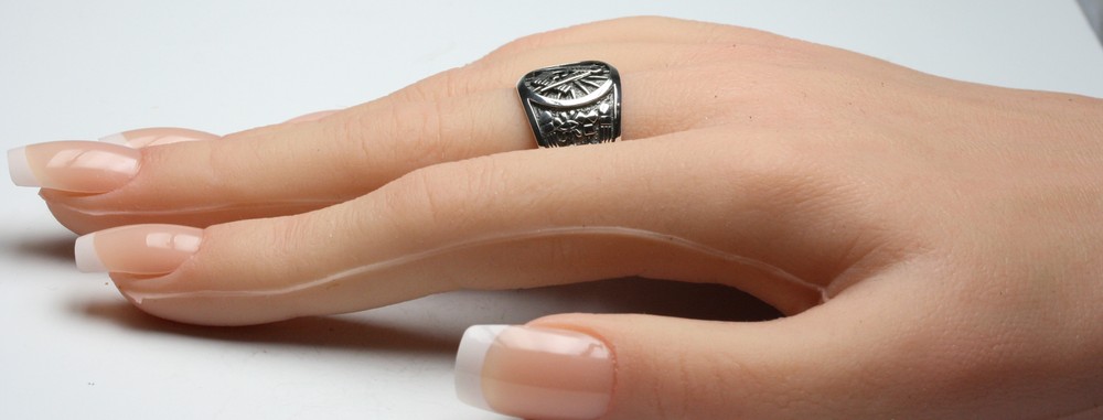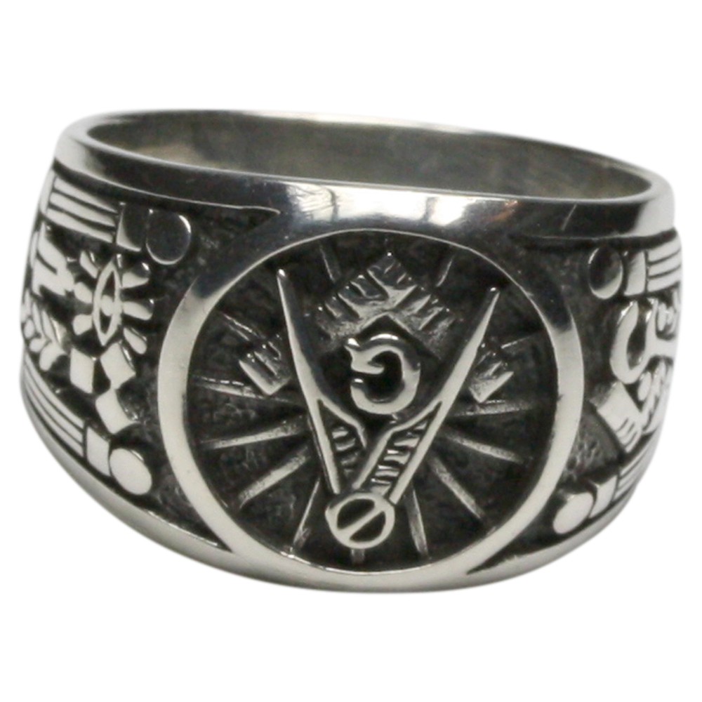 Ein genau gearbeiteter Siegelring aus Silber 925, versehen mit den Symbolen der Freimaurer.
