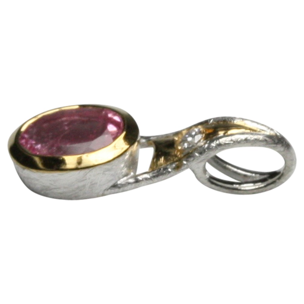 Feiner Anhänger 925er Silber pinkfarbener Turmalin und Diamant